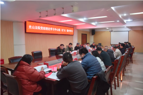 12月27日,光山法院召开党组理论学习中心组(扩大)集中学习。院党组书记、院长付晓虎主持会议并讲话。全体班子成员、各部门负责人、机关总支委员及各支部书记参加了会议。