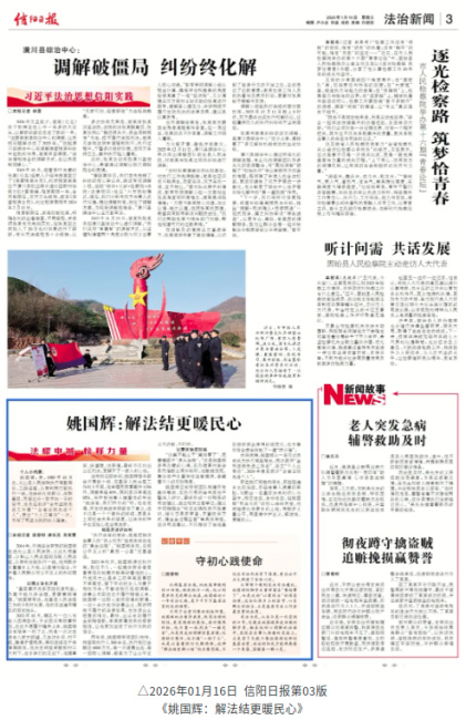 从审理个案到发出司法建议,姚国辉的脚步未曾停留在“案结事了”,而是迈向“以案促治”的深层治理。这份扎根乡土的坚守、心系群众的担当,正是基层司法工作者最宝贵的品质。