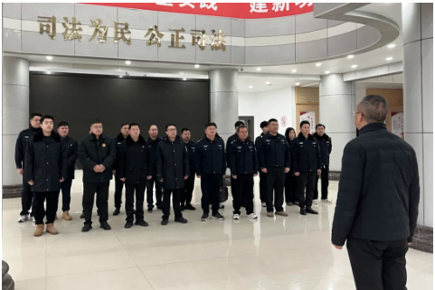 早上7点30分,天上下着蒙蒙细雨,全体执行干警已在办公楼二楼大厅集合完毕,党组成员、执行局局长陈梦扬作简单行动部署后,执行干警兵分三路,迅速奔赴各行动现场,展开“节前突击”。